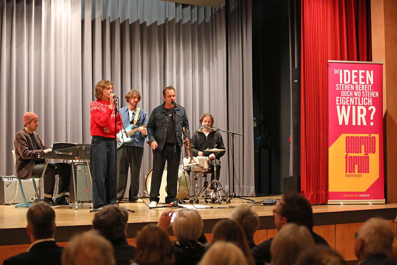 Mit einer Live-Premiere eröffneten am Mittwoch, 22.11.2023 die jungen Musiker um Joo Kraus & Veit Hübner das Programm zum zweiten Hemminger Energieforum.