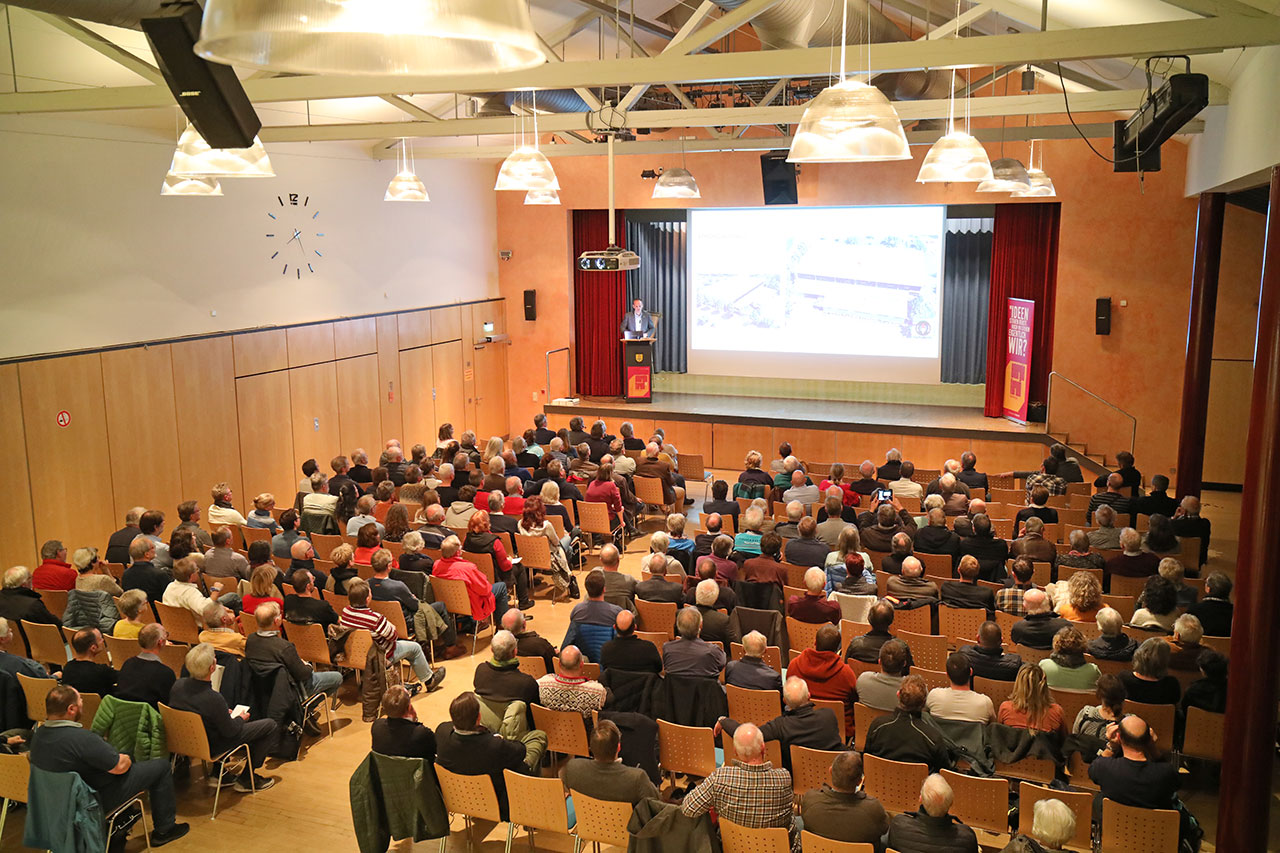 Anschließend betrat ein maßgeblicher Mitgestalter der Hemminger Energiewende die Bühne. Ulrich Ramsaier, Geschäftsführer der Naturenergie Glemstal. Er führte den Gästen im Saal anschaulich vor Augen, welche Schritte in Hemmingen bereits erfolgt sind und welches die nächsten Schritte sein müssen. Mit dem ersten Schritt, dem Bau einer Biogasanlage, der 2005 noch große Widerstände hervorrief, sichert man heute noch ganzjährig einen konstanten Anteil der Wärmeversorgung im lokalen Nahwärmenetz. Weitere Schritte, der Bau einer Heizzentrale direkt im Industriegebiet, bestückt mit zwei unterschiedlichen Heizkesseln, sowie die Errichtung eines Biomethan-BHKW’s sind Grundpfeiler für die Versorgung von mehr als 2.000 Wohnungen, nahezu alle kommunalen Gebäude, große Teile der Industrie und des Gewerbes mit regionaler, ökologischer Wärme. Sein Plädoyer für den Einsatz dieser regenerativen „Werkzeuge“ für die Energiegewinnung untermalte er auf sehr anschauliche Weise. Einem hölzernen Werkzeugkasten, der die fossilen Energieträger symbolisierte, stellte er bei seinem Vortrag einen modernen, wohlsortierten Werkzeugkoffer gegenüber. Dieser neue Werkzeugkoffer enthält für ihn die nachhaltigen Werkzeuge, die wir heute kennen und nutzen. Sein Schlussappell an alle Anwesenden: Wir wissen nicht, welche Werkzeuge uns die Zukunft in die Hand gibt, aber die, die wir kennen, müssen wir nutzen, wenn wir eine Zukunft haben wollen. Auch bei der Naturenergie Glemstal ist der nächste Schritt ein Schritt in diese Richtung. Eine Großwärmepumpe und ein hochdimensionierter Pufferspeicher sollen das Konzept „nachhaltige Energie für die Region“ komplettieren.